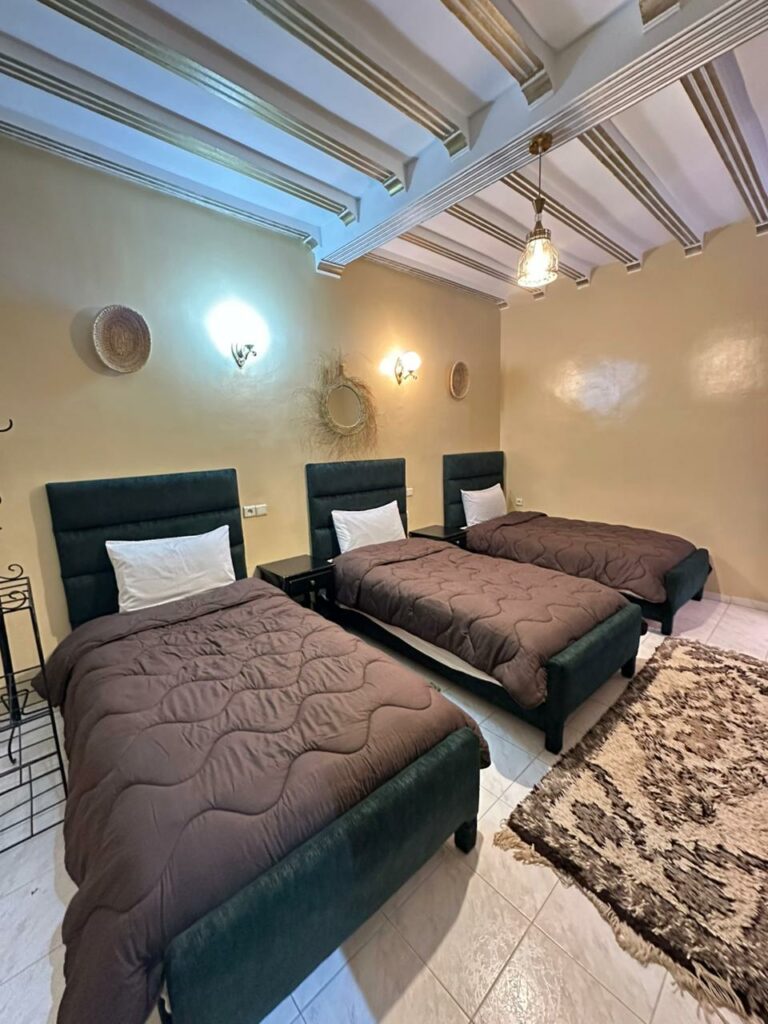 Les prix sont compris entre 500 et 1140 dirhams la chambre, selon l’équipement, le nombre de personnes et la restauration choisie (petit déjeuner ou demi pension). Vous trouverez le détail sur notre page de tarifs.